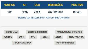 Se desejar informações adicionais sobre a bateria Varta I8, você pode baixar a ficha técnica do produto no seguinte link: