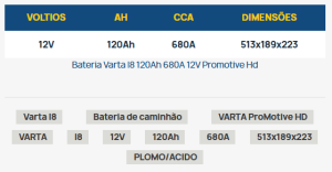 Se desejar informações adicionais sobre a bateria Varta I8, você pode baixar a ficha técnica do produto no seguinte link: