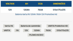Se desejar informações adicionais sobre a bateria Varta I16, você pode baixar a ficha técnica do produto no seguinte link: