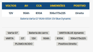 Algumas das principais características da bateria Varta G7: